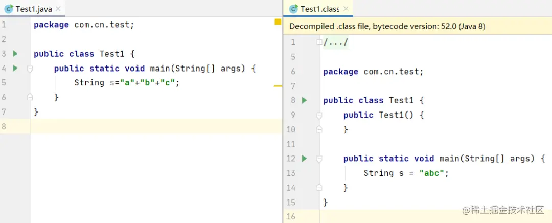 估计大家会有疑问了,为什么源代码中字符串拼接的操作,在编译完成后会消失,直接呈现为一个拼接后的完整字符串呢?