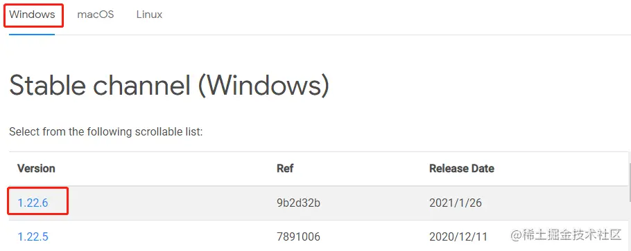 选择操作系统以及flutter 的版本下载