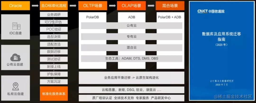 目前,阿里云已经把这一套标准化、产品化的流程和中国信通院一起做成了数据库迁移的标准指南,开发者可以到网上查阅,遵照指南做数据库迁移。