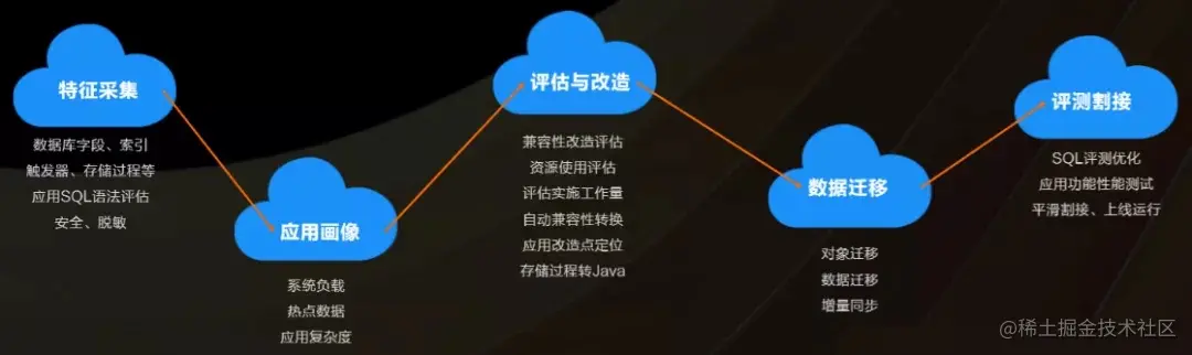首先,我们会给用户一个工具或者脚本,到用户的系统里面运行一下,它可以采集到用户数据库的一些特征,这个特征包括有哪些 SQL、函数、存储过程跟目标数据库写法不匹配,原始的数据库的特点,比如它是一个系统压力特别大的数据库,还是一个热点数据特别明显的数据库。探测到这些点后,会告诉用户在后期的改造中要注意什么问题。