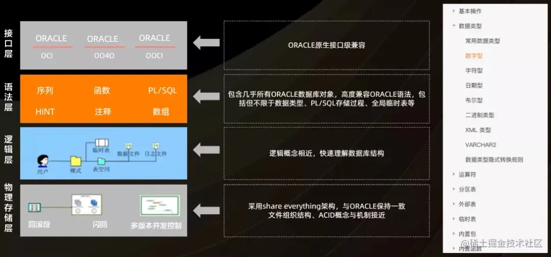 PolarDB提供的Oracle兼容性是包括多个方面的,除了语法层的兼容,还有物理存储层、逻辑层和接口层。