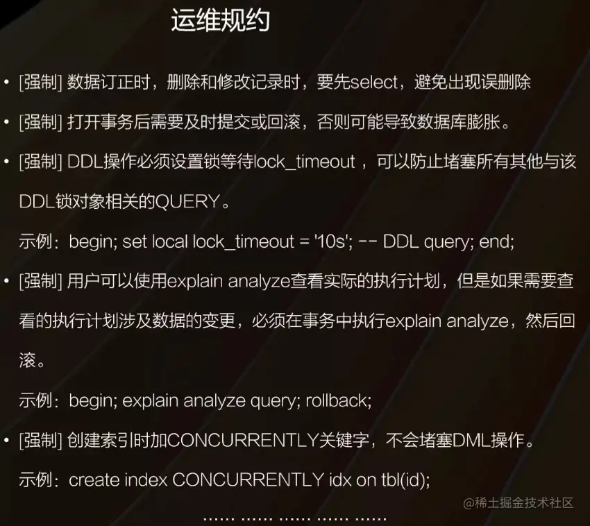 SQL和运维也有许多规约,这里主要讲一下运维方面其中几个点。