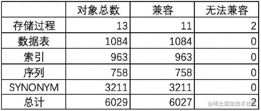 通过这个表格,我们可以看到原始数据库如果要迁移到PolarDB的时候,它整体的兼容性还是比较高的。我们一共探测了6029个对象,这个对象可能包括存储过程、数据表、索引序列,还有一些同义词等相关的东西,其中不兼容的对象只有两个,其实是比较少的。报表里会指出具体是哪两个表,里面也有一些比较具体的修改建议,然后就可以迁移过来了。