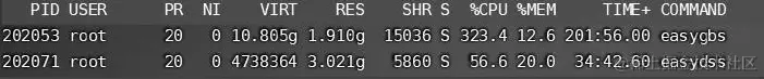 在该现场中,可以看到系统整体大概会占用50%左右的内存(其中easydss为EasyGBS使用的流媒体分发软件)。