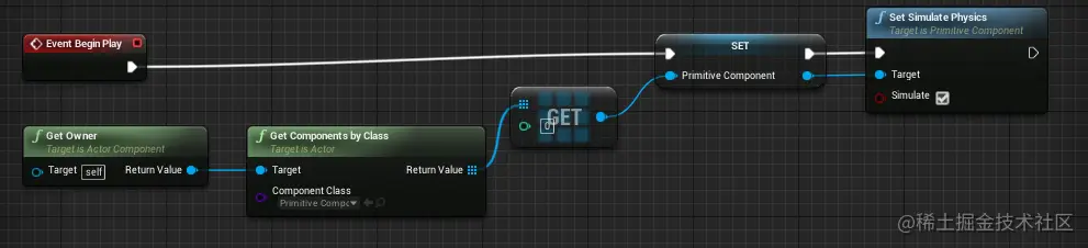 上述节点实现了 Component 的初始值设置和模拟物理效果(Simulate Physics)设置。