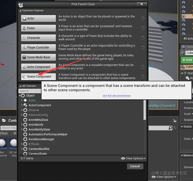 首先是创建一个 Scene Component 蓝图类,命名为 HoverComponent 。