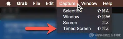 回车之后没有打开任何窗口,你可能觉得刚刚是打开了假的 App。但其实,这个 App 本身就是没有 UI 的,只会在 Menu Bar 上面显示一条菜单。我们可以在这里找到延时截图的选项: