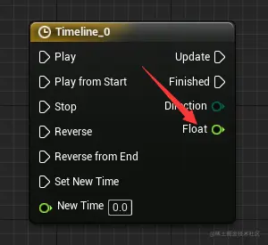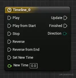 | Play from Start | 触发 Play from Start 时是从 Timeline 的初始时间点开始运行,但再次触发该节点时时间会被重置,即从初始时间点运行该函数,这表明可以重复使用 Timeline 函数。 |