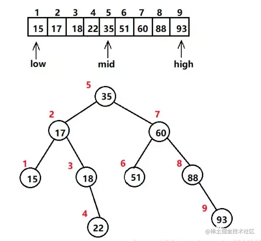 使用二分查找法,需要将数据先排序,但是其查询效率将大大提高。例子如下: