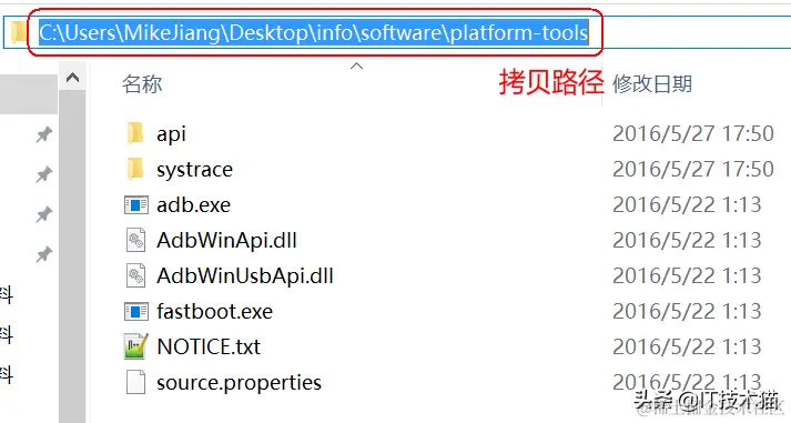 1)解压"platform-tools.zip",进入其目录,拷贝其路径:
