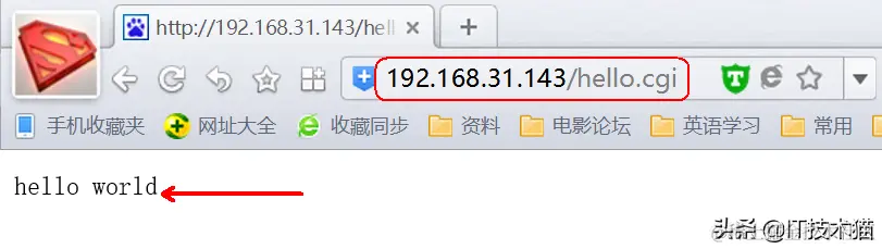 测试网页版helloworld,在浏览器输入:192.168.31.143/hello.cgi