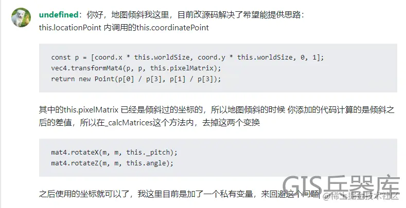 一位是思否上的网友“undefined”(这个不是bug,是他的名称),他在看了第一篇文章后,找出了地图旋转时瓦片错位的原因,并给出了解决方法。
