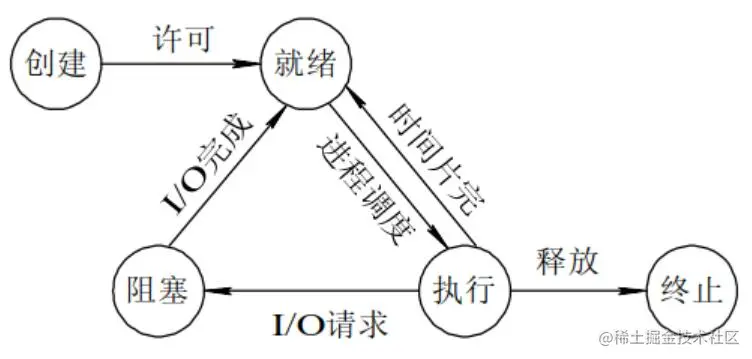 - 就绪:等待操作结束,但还未被分配CPU的状态。