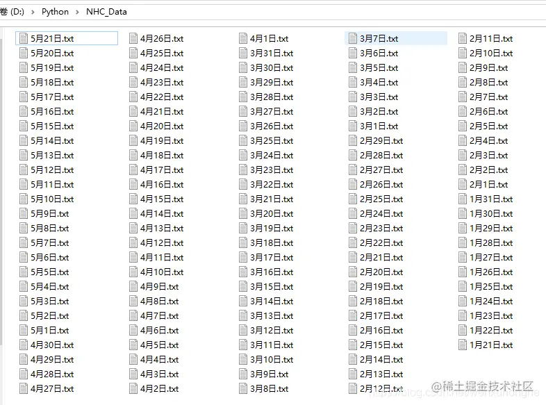 - 文中源码爬取到的数据,文件名是文章标题,数据展示部分的截图,为了过审我批量重命名为发布日期,望理解。