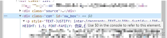 然后分析文章详情界面,正文部分存放在一个 id 为 xw_box 的 div 标签下(div 下的 众多 p 标签中,不过不用去管那些 p 标签,直接取 div 的 text 即可)。