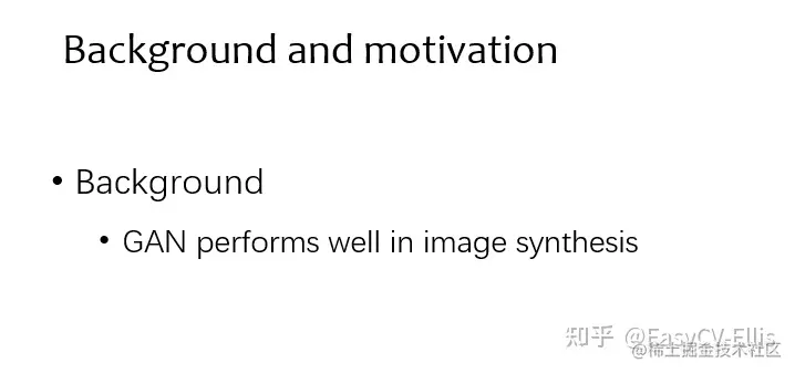首先是背景,背景就是 GAN 在图片合成领域表现优异