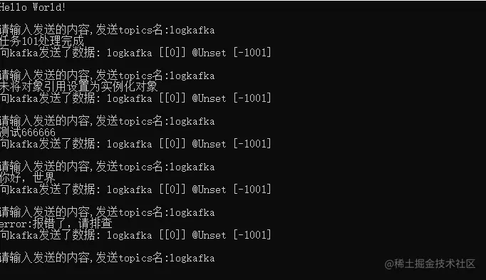 Console.WriteLine($"向kafka发送数据失败:{e.Message}");