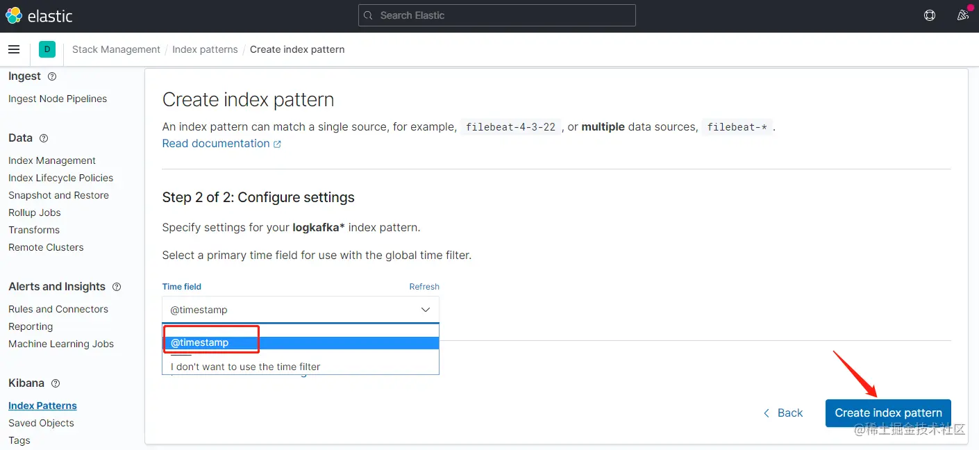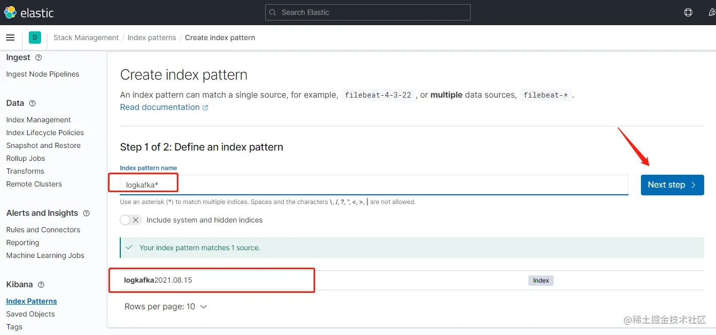输入匹配符,匹配到es日志索引,下一步