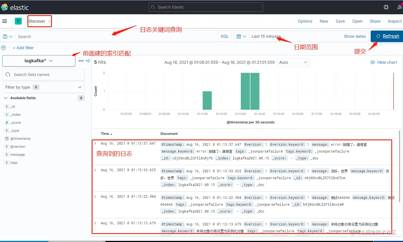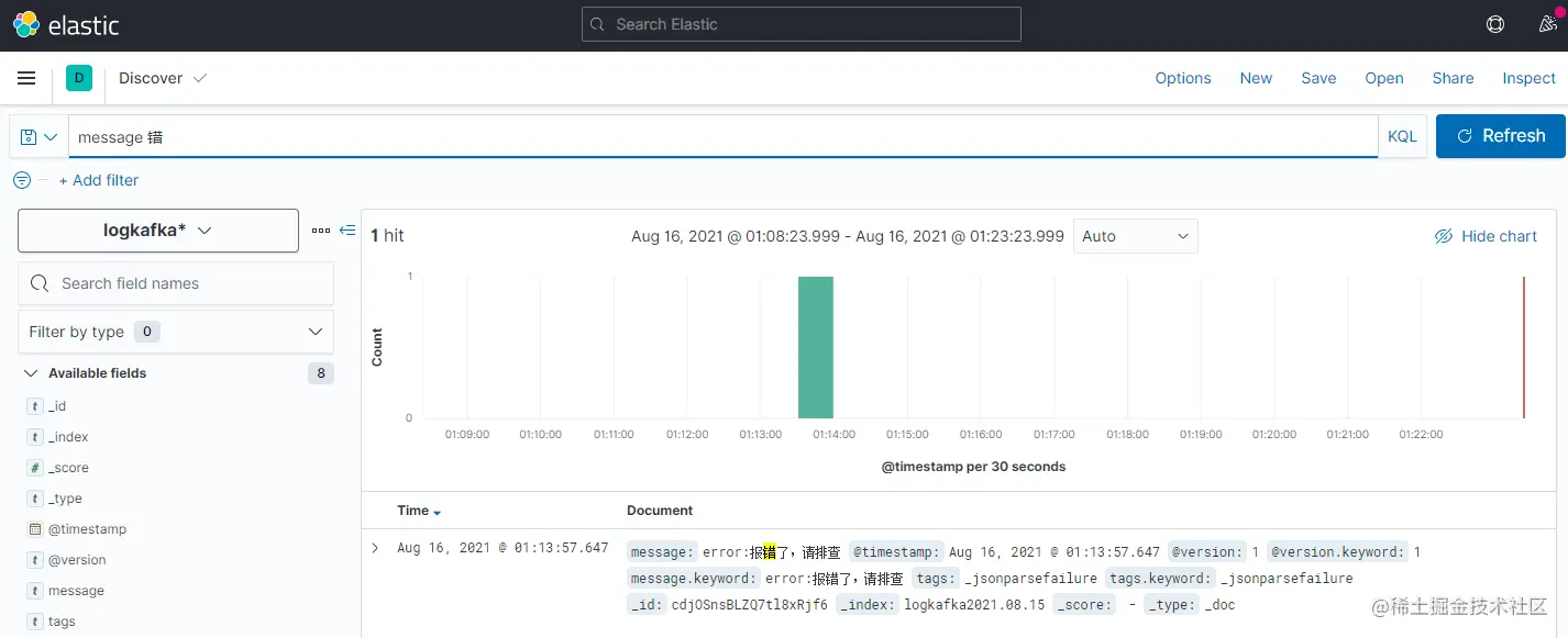 index \=> "logkafka%{+yyyy.MM.dd}" #采集到es的索引名称