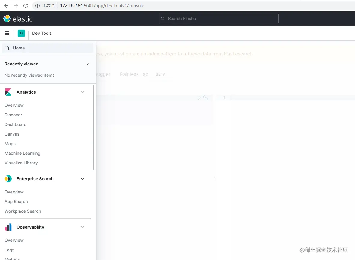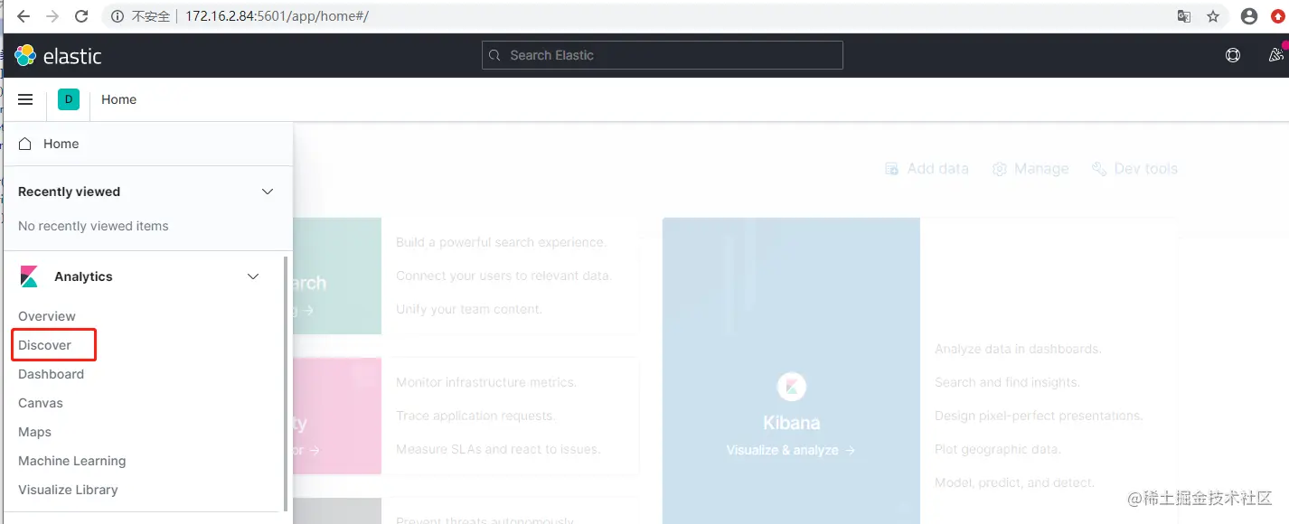 打开Kibana界面,ip:5601,打开左边的面板
