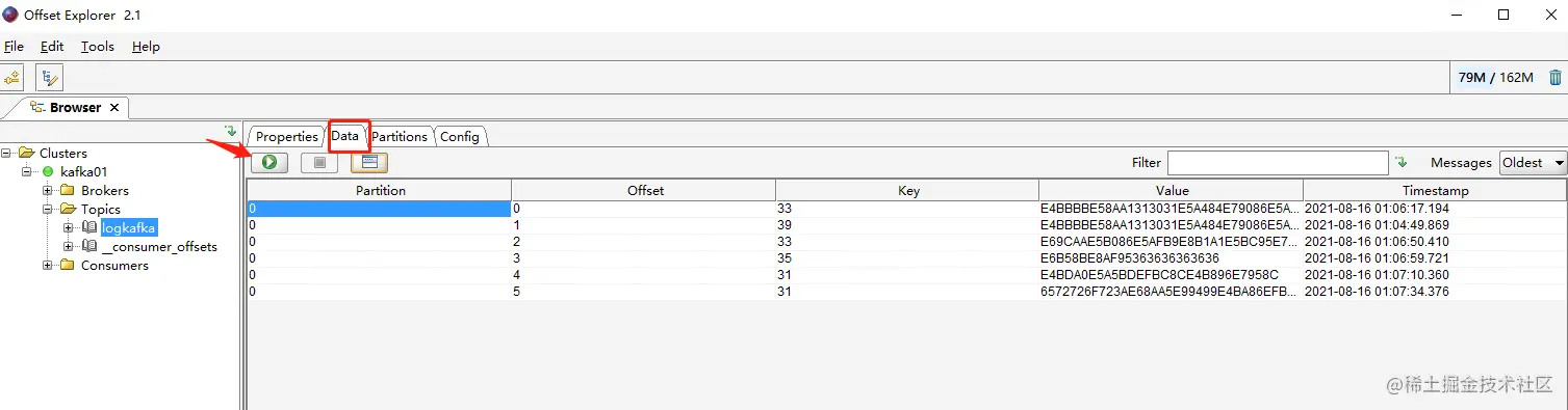 查看kafka队列,已经有数据