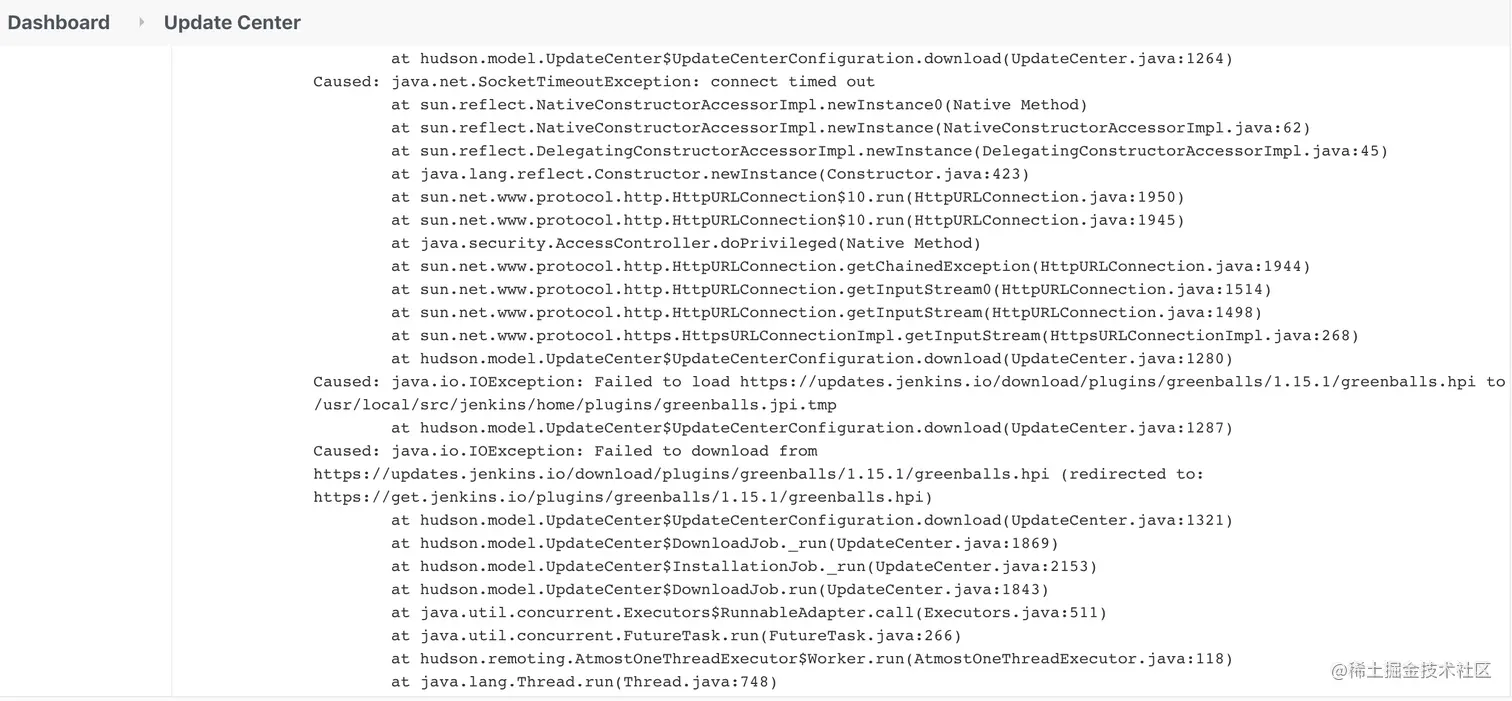 Caused: java.io.IOException: Failed to download from https://updates.jenkins.io/download/plugins/greenballs/1.15.1/greenballs.hpi (redirected to: https://get.jenkins.io/plugins/greenballs/1.15.1/greenballs.hpi)