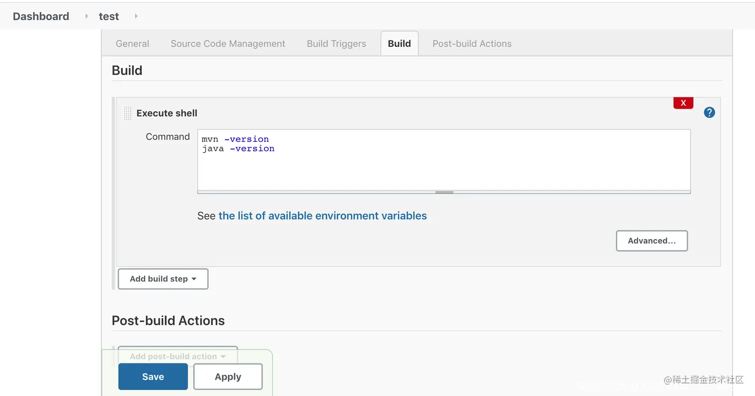 这里创建一个类型为FreeStyle的Job,内容如下,只是简单的展示了maven版本和Java版本。