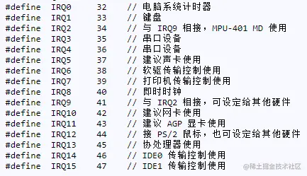 刚才已经说过,8259a 是可编程的,假如我们通过配置寄存器,把 IRQ0 的中断号设置为 32, 那么主片上 IRQ1 ~ IRQ7 所对应的中断号依次加 1,从片上 IRQ8~IRQ15 对应的中断号也是依次递增。