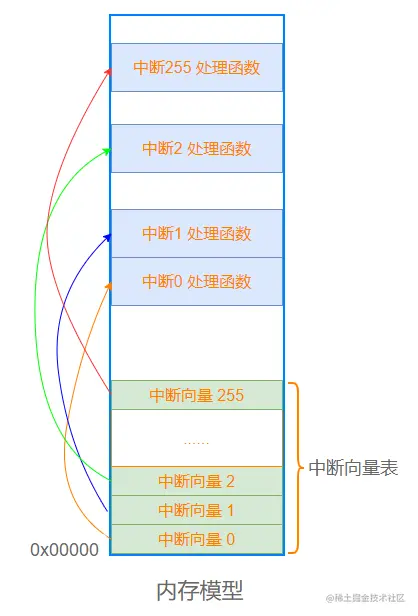 如果把一个中断向量看作函数指针,那么这个中断向量表就相当于是函数指针数组。