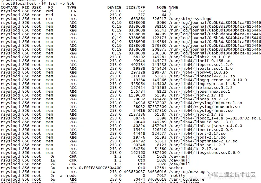 比如,查询/var目录下文件被哪些进程打开,可以看到/var/log/下文件及/var/spool/下文件都能查询到: