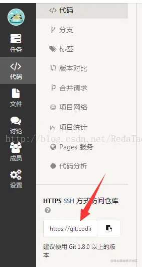 先把远程库的地址复制下来,即coding上ele-app项目的位置(复制下图红箭头所指内容);