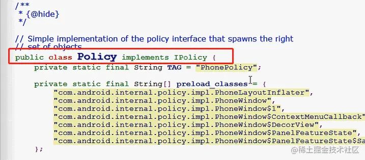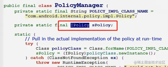 我们需要找到它的实现类,通过寻找发现Pollicy.java实现了IPolicy接口