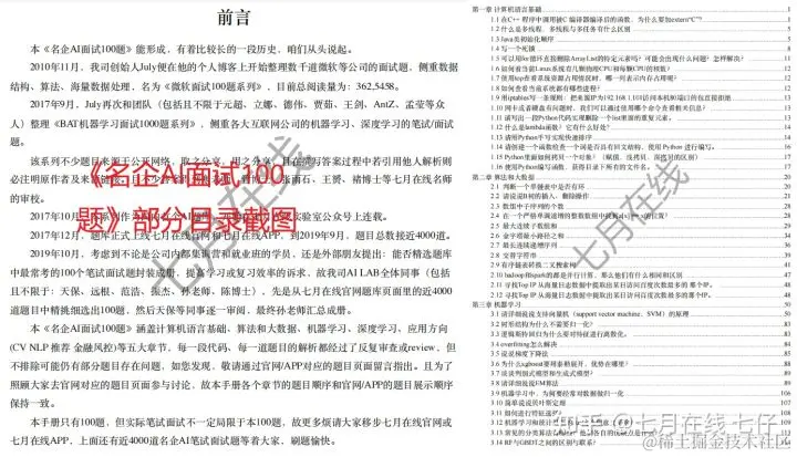 **帮助数千人成功上岸的《名企AI面试100题》书,电子版,限时免费送,点击免费领取>>>www.julyedu.com/