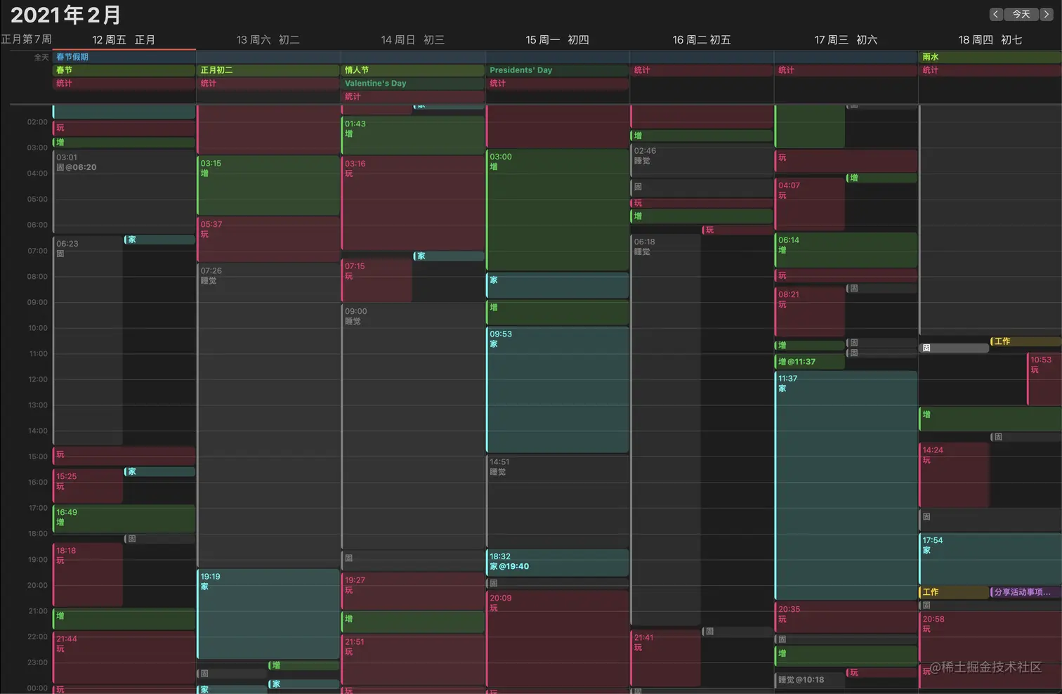 下图是春节期间的作息。正因为看到很多时间就这么流逝掉了,所以春节期间开始注意做一点能够提高自己的事情。