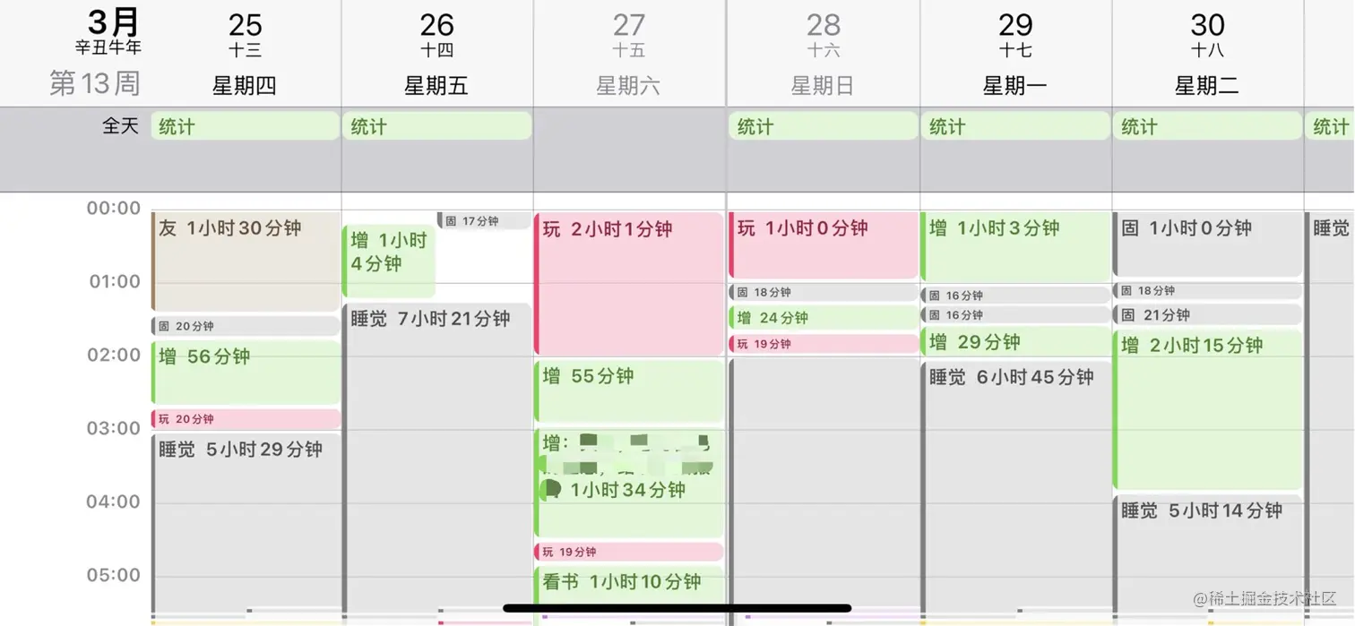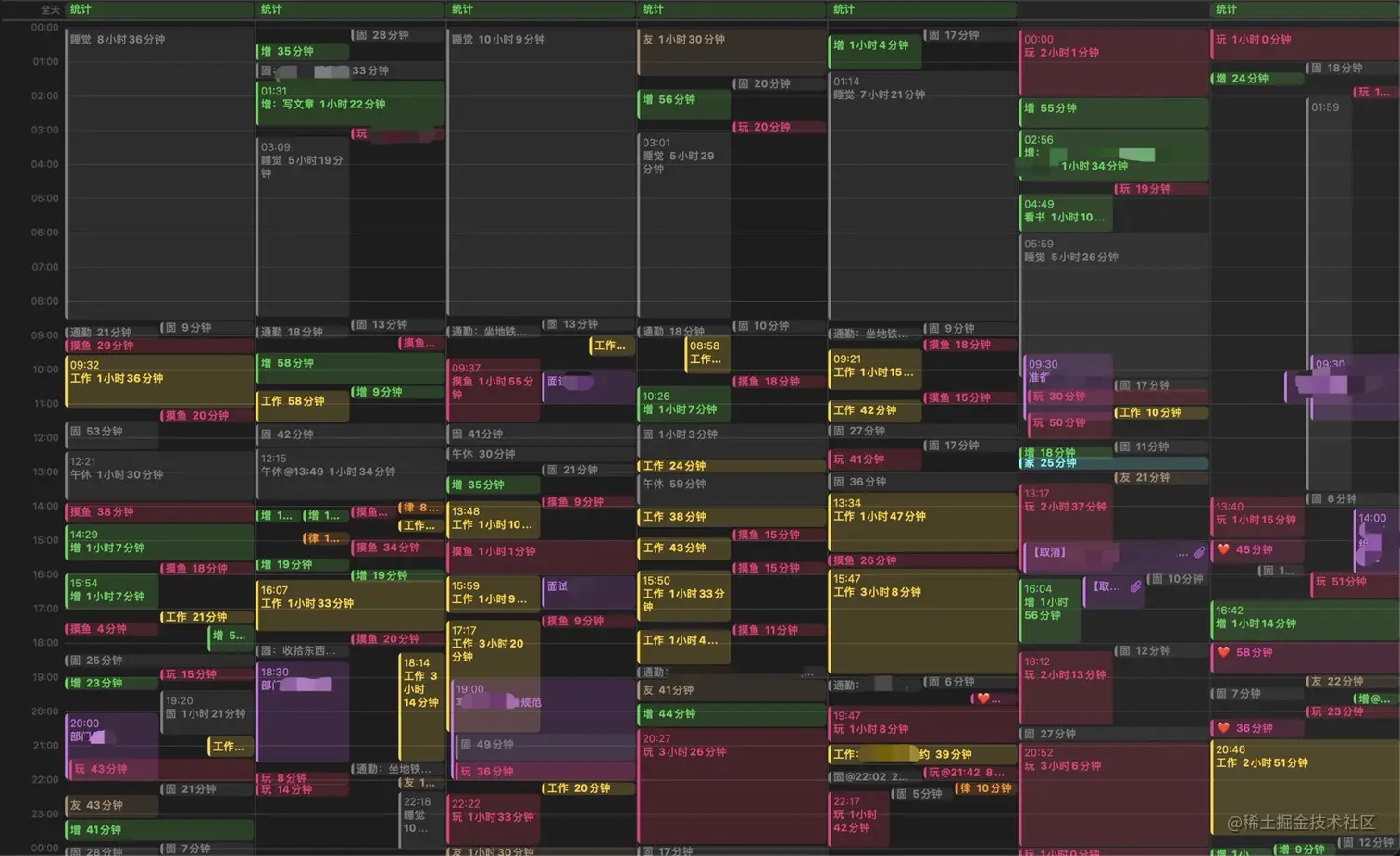 下图是20年国庆节假期我的时间作息,可以看到基本上就是在睡觉和玩。那段时间没好好休息过,整个国庆就是在给我自己调整状态了。
