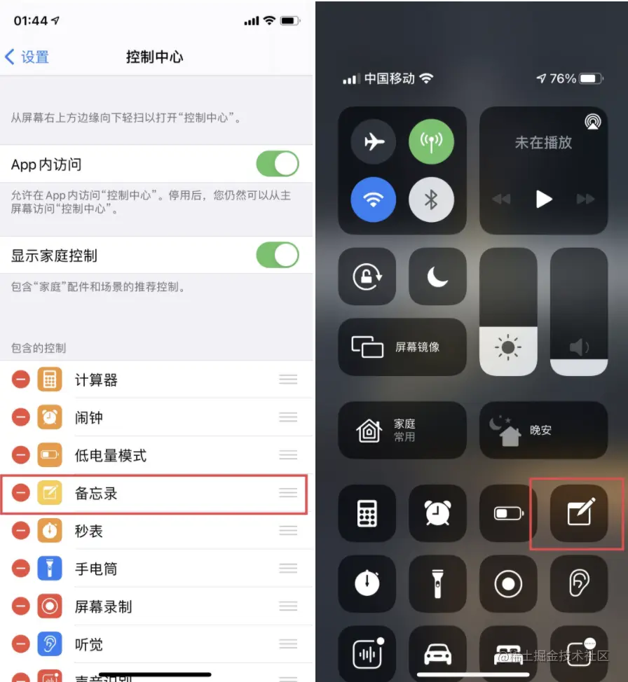 首先,我们要在控制中心中添加快速创建备忘录的入口,这样即使在锁屏界面依然能够快速创建记录。