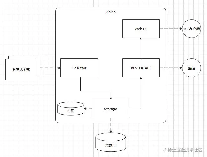 我们可以使用它来收集各个服务器上请求链路的跟踪数据,并通过它提供的 REST API 接口来辅助我们查询跟踪数据以实现对分布式系统的监控程序,从而及时地发现系统中出现的延迟升高问题并找出系统性能瓶颈的根源。