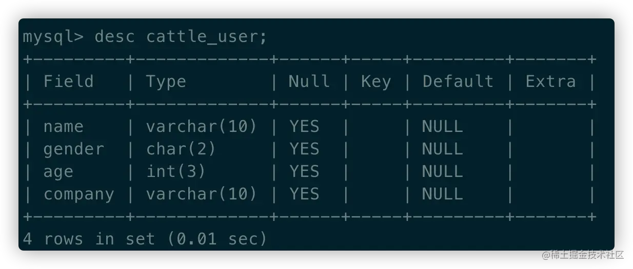 desc <表名>