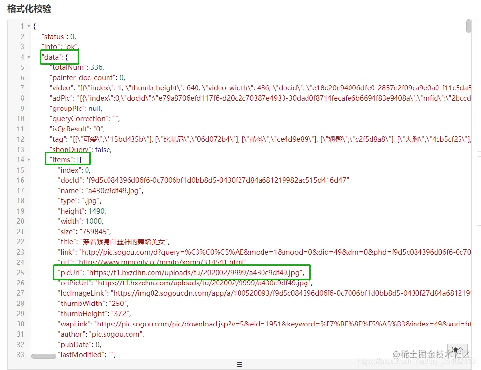 分析Respose返回的信息,可以发现我们想要的图片地址放在 picUrl里,