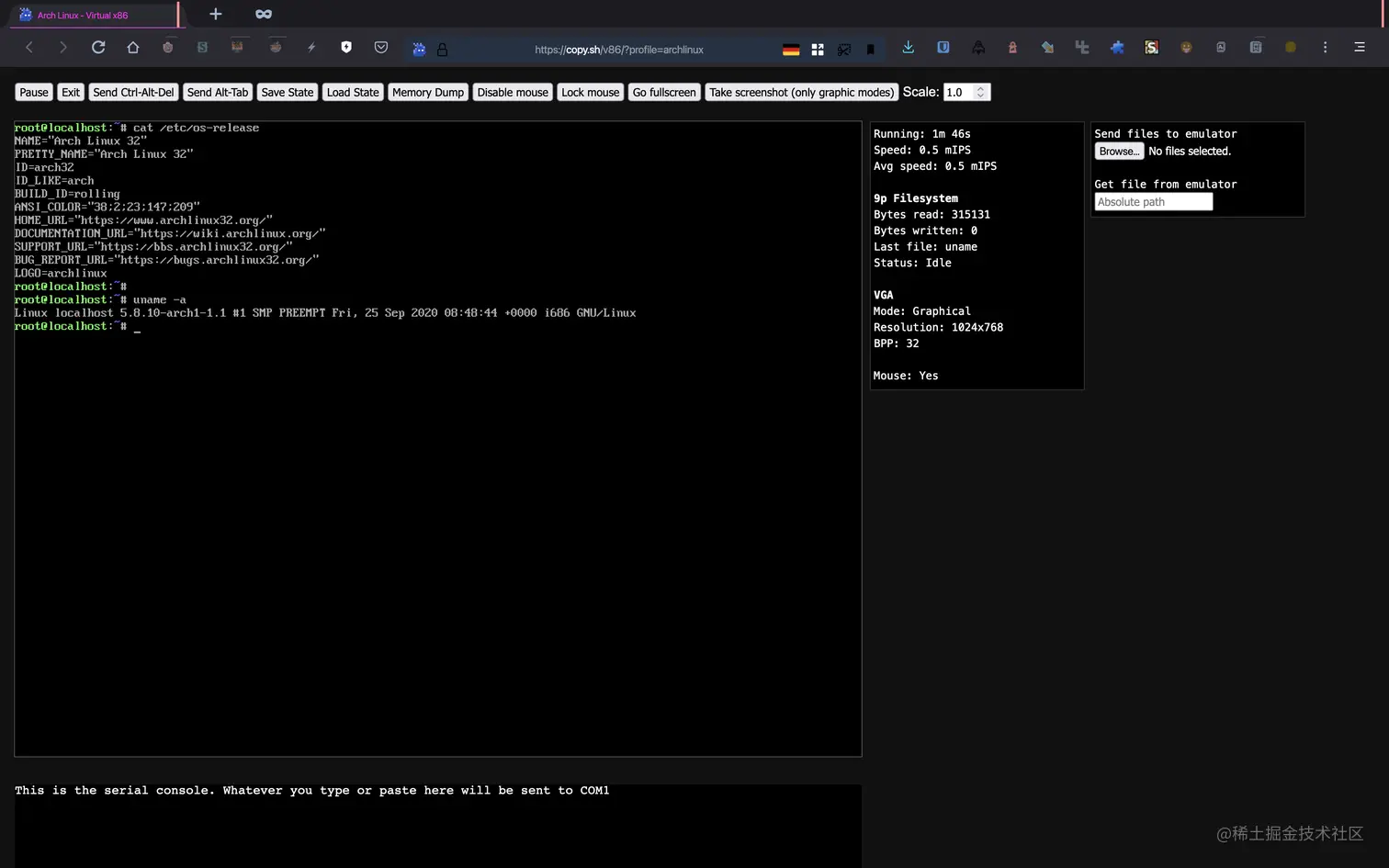2、v86 是一个基于 Rust 和 WebAssembly 的开源项目,它模拟了兼容 x86 的 CPU 和硬件,可以直接在浏览器里运行虚拟机。