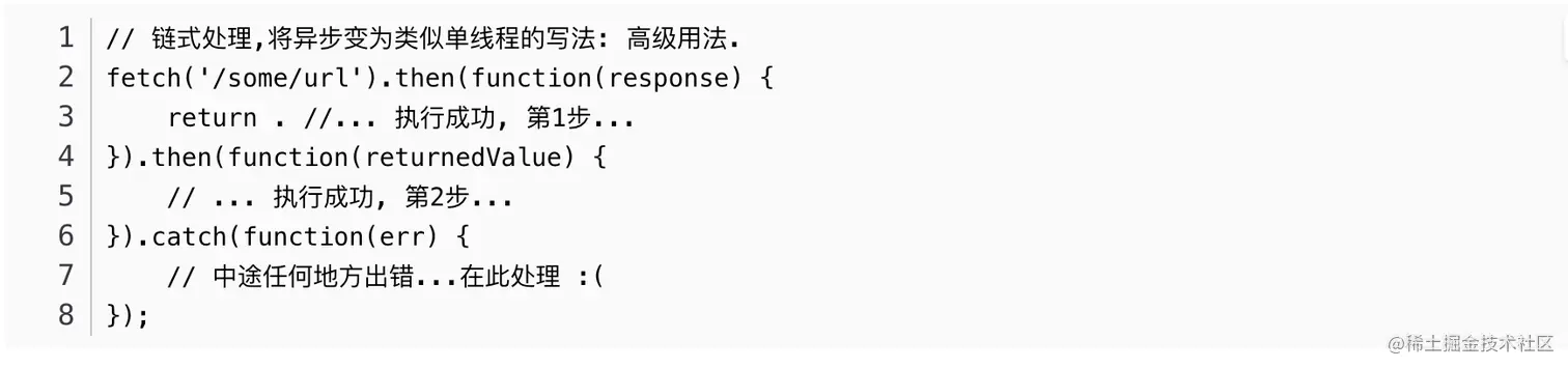 3、使用了 JavaScript Promises 来处理结果/回调: