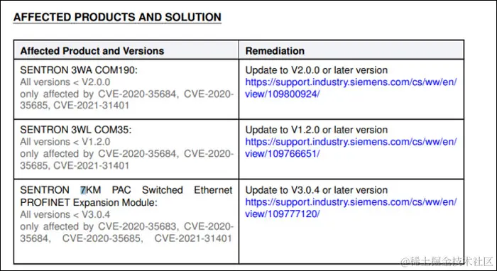 西门子受影响产品:
