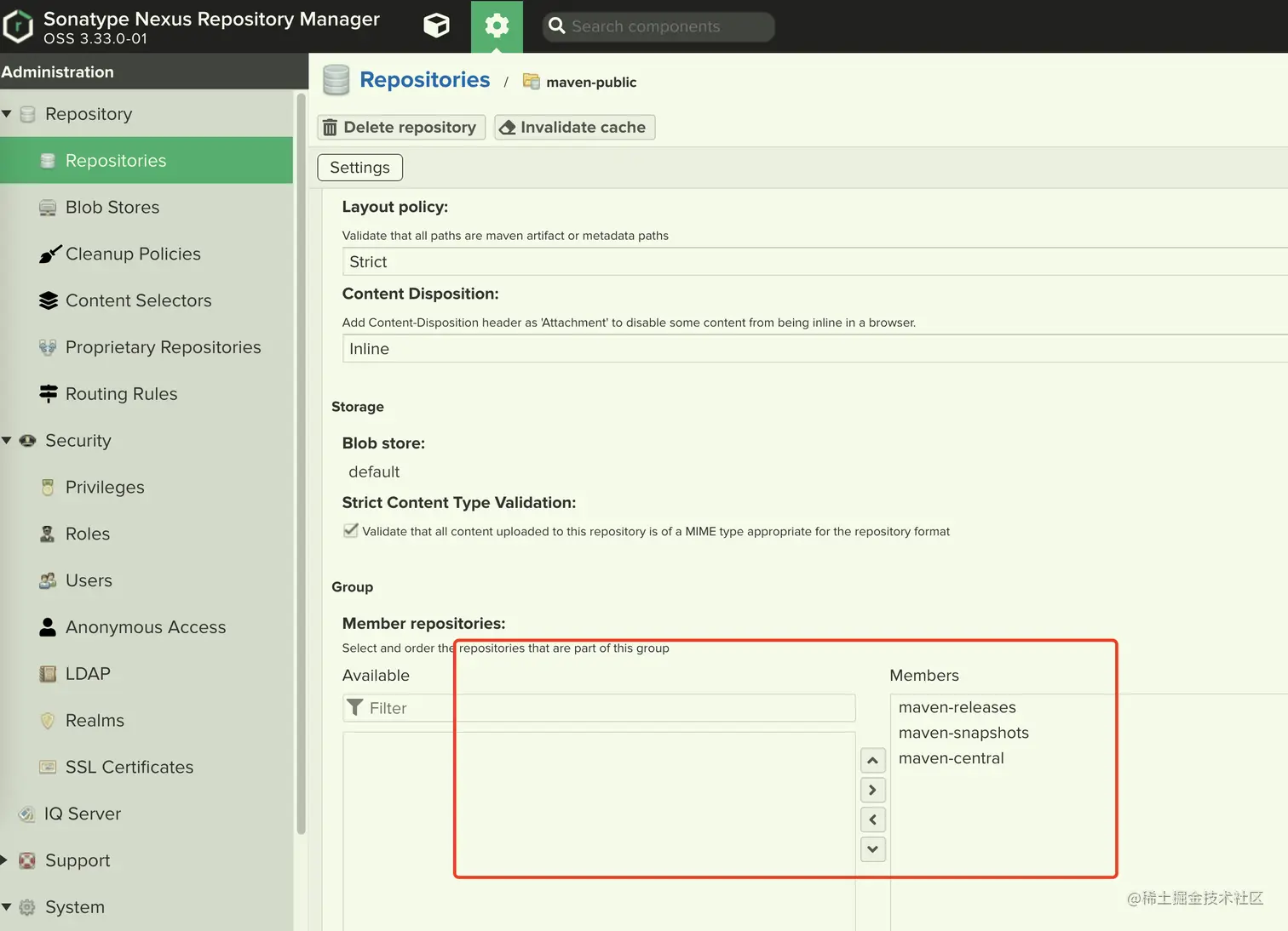 maven-public:对上面的几个仓库做分组,可以通过这个分组仓库拉取到分组内的所有仓库的包。