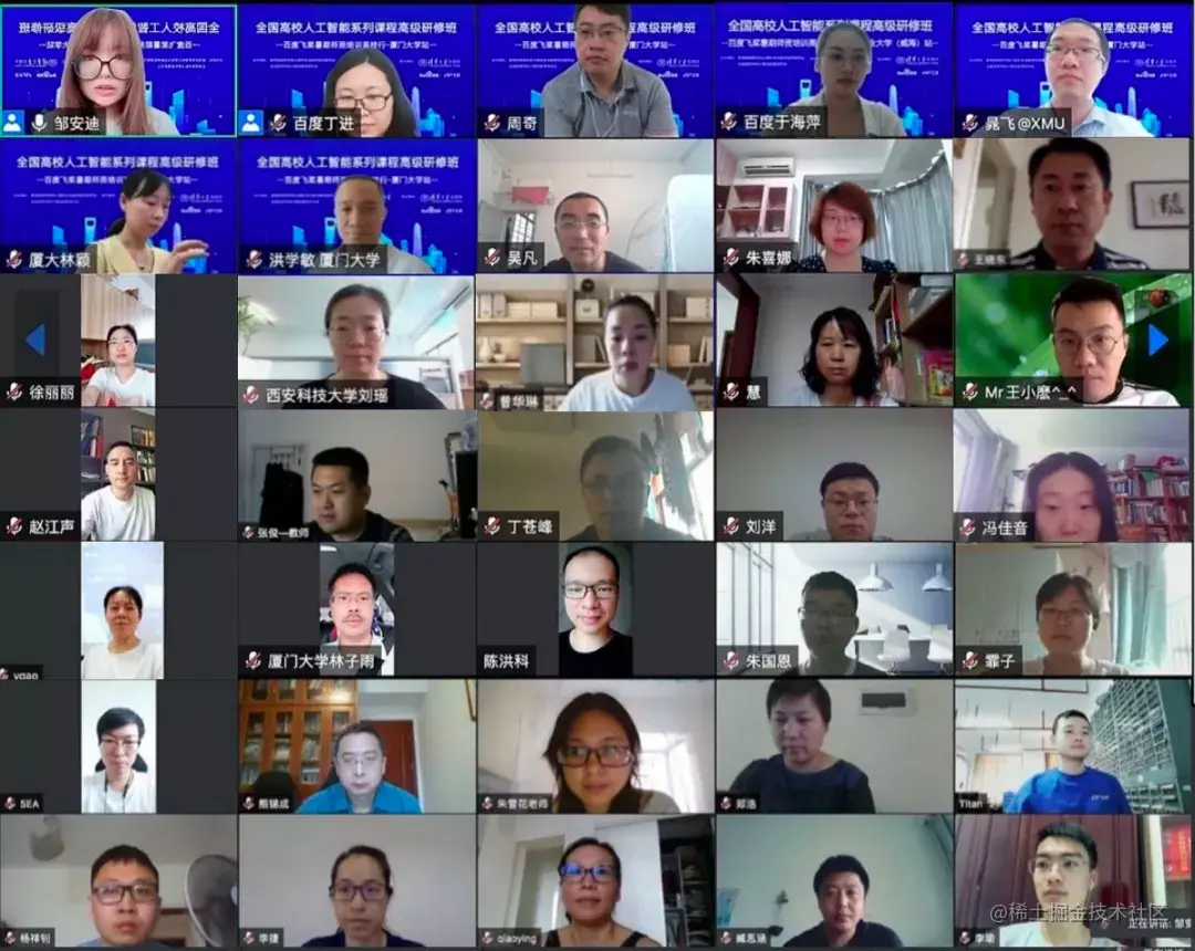 「2021全国人工智能师资培训·飞桨暑期高校行」由教育部高等学校计算机类专业教学指导委员会和全国高等学校计算机教育研究会共同主办,七所高校承办,清华大学出版社与百度公司协办。厦门大学站作为本次活动的第七站,得到了来自全国各大高校老师们的大力支持,最终全国各地73名老师相聚云端,开启为期两天的AI学习之旅。