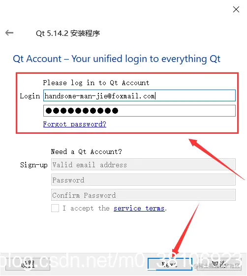 Qt 在安装过程中会提示用户进行注册和登录,虽然实际开发时不需要登录,但是新用户也需要注册,否则无法进行安装。