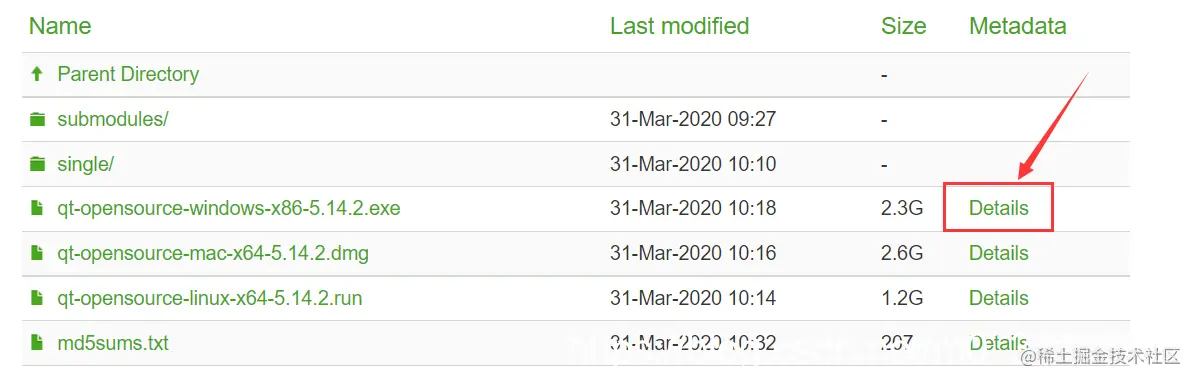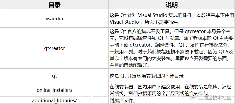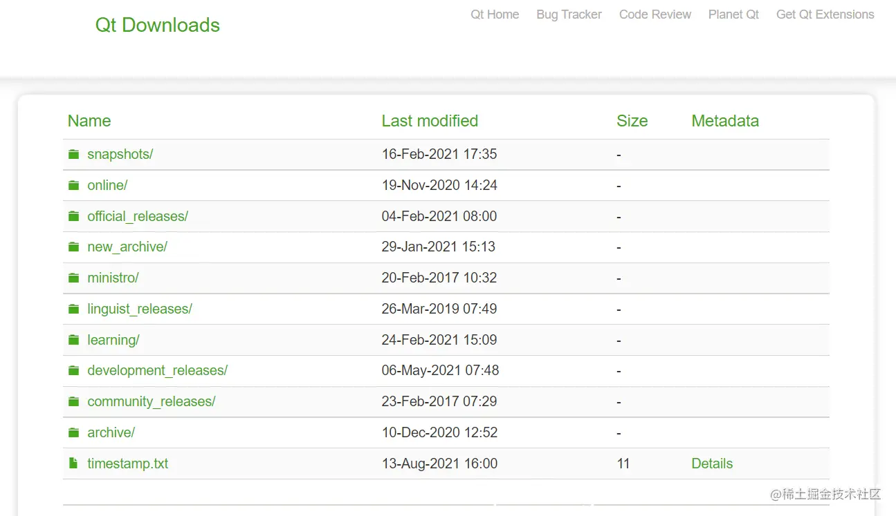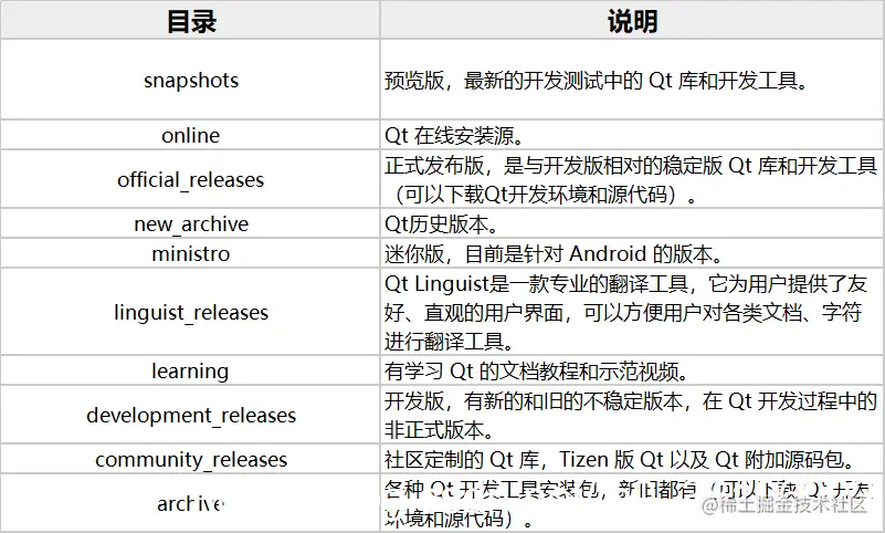 archive 和 official_releases 两个目录都有最新的 Qt 开发环境安装包,我们以 archive 目录里的内容为例来说明。