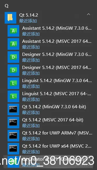 安装完成后,在 Windows“开始”菜单中会看到 Qt 5.9.0 程序组,如下图所示: