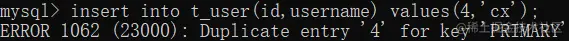 解释 :报错的原因是插入的id的字段值与以前插入的字段值重复。