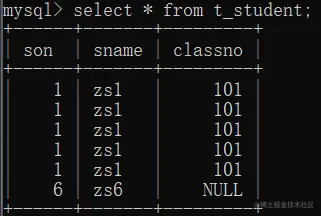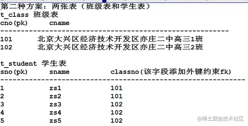 注意 : t_student中的classno字段引用t_class表中的cno字段,此时t_student表叫做子表。t_class表叫做父表。