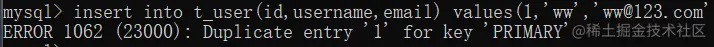 insert into t_user(id,username,email) values(1,'ww','ww@123.com');